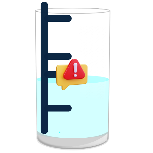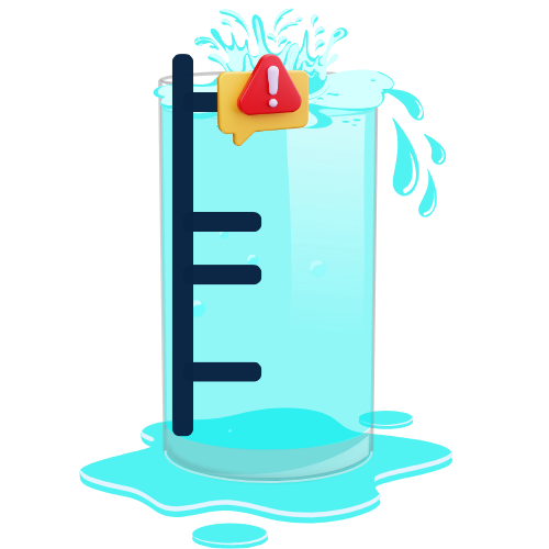 Este alerta é ativado quando o sensor de desligamento automático da bomba falha ao atingir o nível máximo de água. O sistema notifica o síndico imediatamente, alertando da falha e do risco de vazamentos, evitando desperdícios.